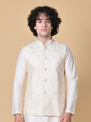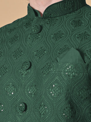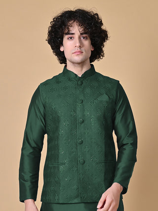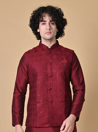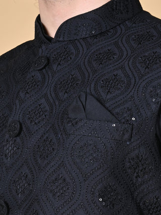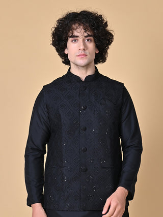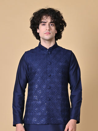Men's Navy Blue Embroidered Kurta & Jacket Set