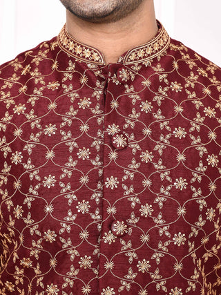 Men's Floral Embroidered Maroon Jacket Set