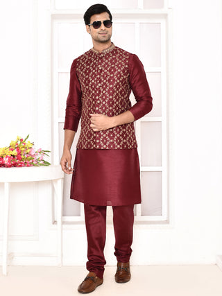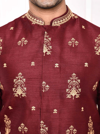Men's Embroidered Maroon Jacket Set
