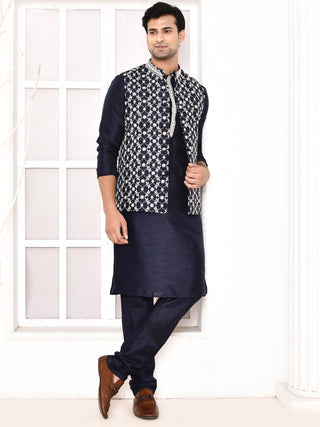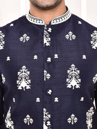 Men's Embroidered Navy Blue Jacket Set