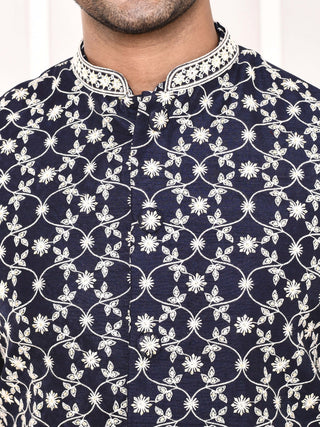 Men's Floral Embroidered Navy Blue Jacket Set
