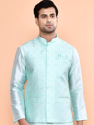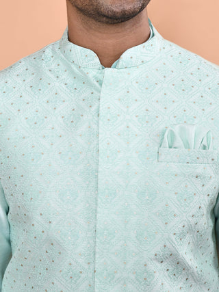 Men's Embroidered Light Blue Kurta & Jacket Set