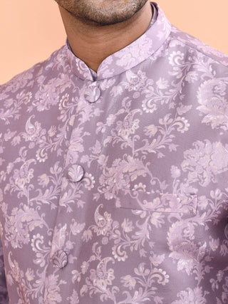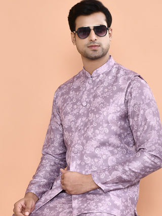 Men's Printed Purple Kurta & Jacket Set