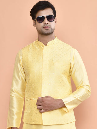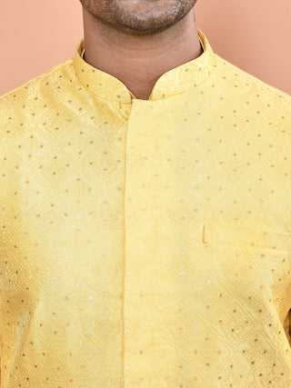 Men's Embroidered Yellow Kurta & Jacket Set