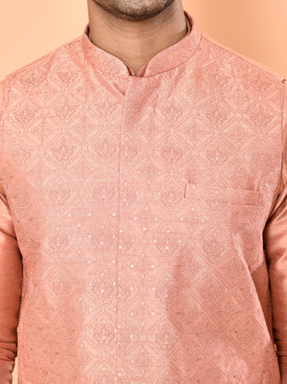 Men's Embroidered Peach Kurta & Jacket Set