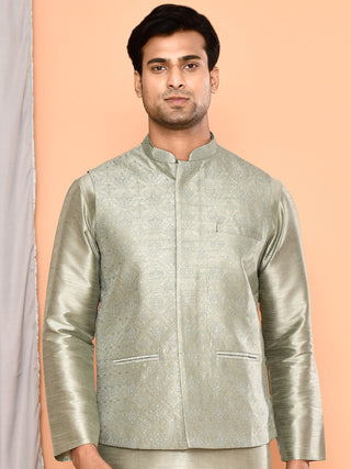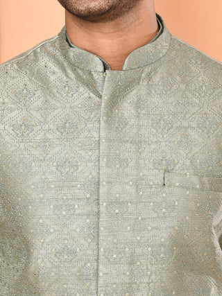 Men's Embroidered Grey Kurta & Jacket Set