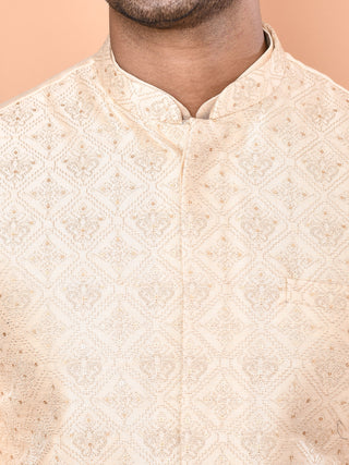 Men's Embroidered Beige Kurta & Jacket Set