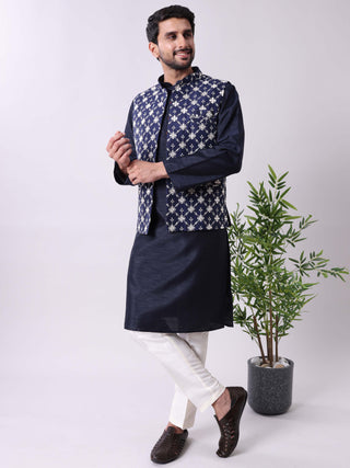 Men's Kurta With Pyjamas & Mirror Work Nehru Jacket