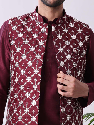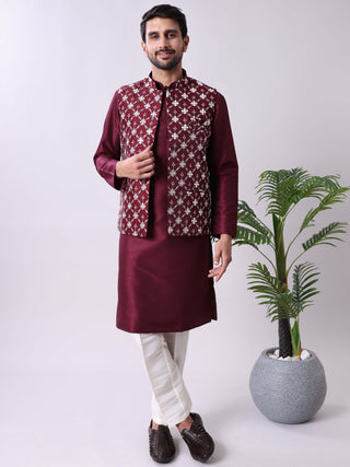 Men's Purple Kurta Pyjama & Printed Nehru Jacket