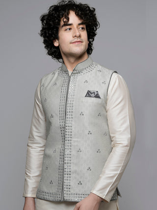 Men's Aqua Mirror Work Jacket and Kurta Set