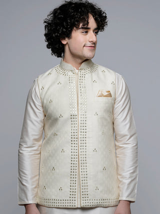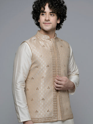 Men's Fawn Woven Designed Jacket and Kurta Set