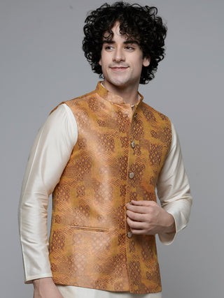 Maahi Fabs Men's Sequin Embroidered Yellow Kurta Set