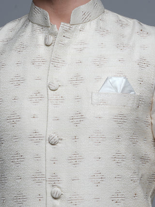 Men's Fawn Woven Designed Jacket and Kurta Set