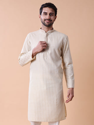 Men's Sequin Embroidered Green Cotton Silk Kurta