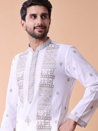 Men's Sequin Embroidered Navy Blue Cotton Silk Kurta