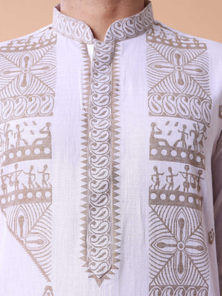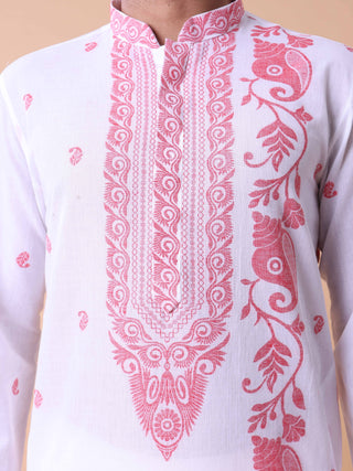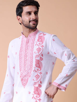 Men's Sequin Embroidered Wine Cotton Silk Kurta