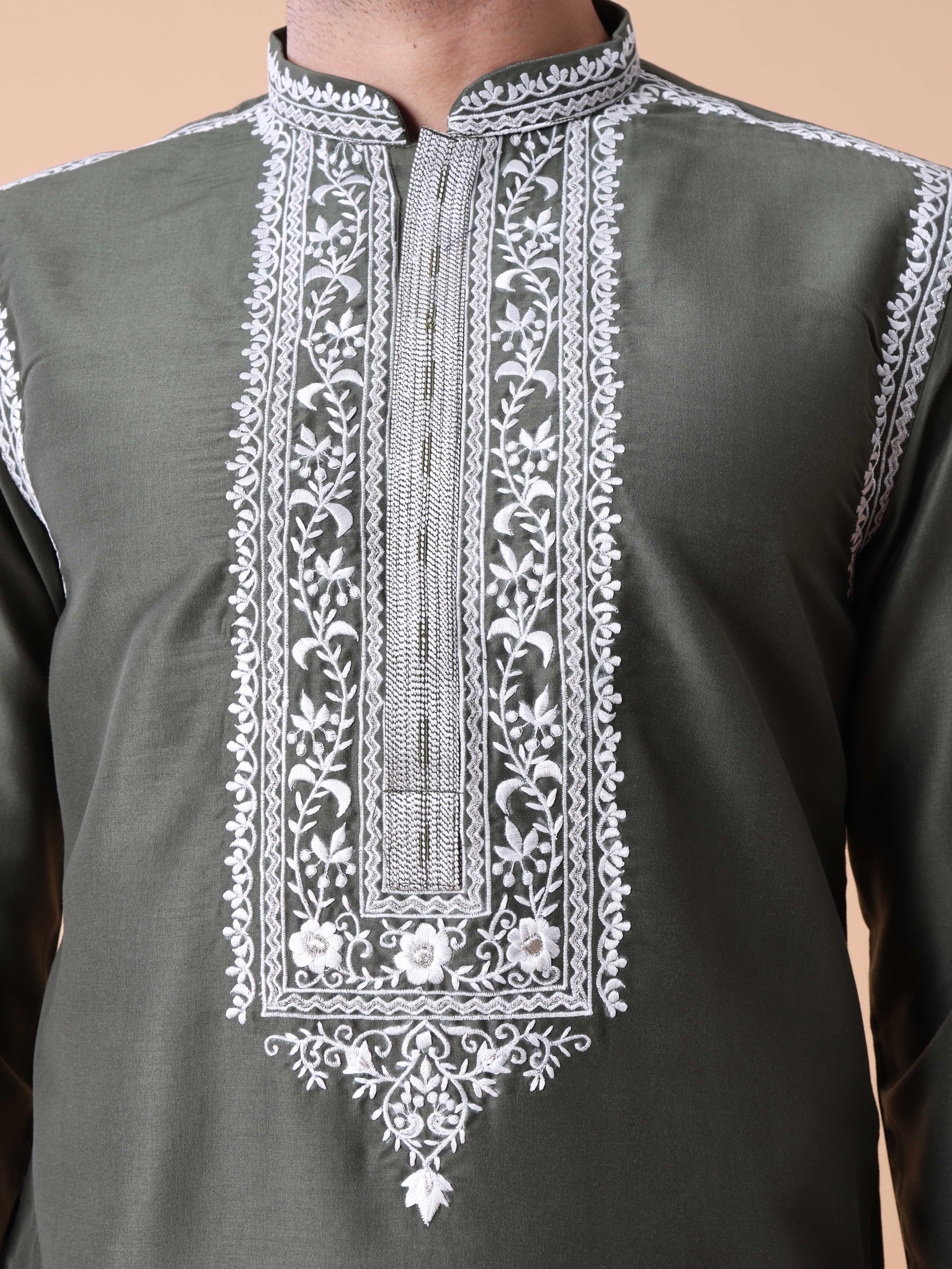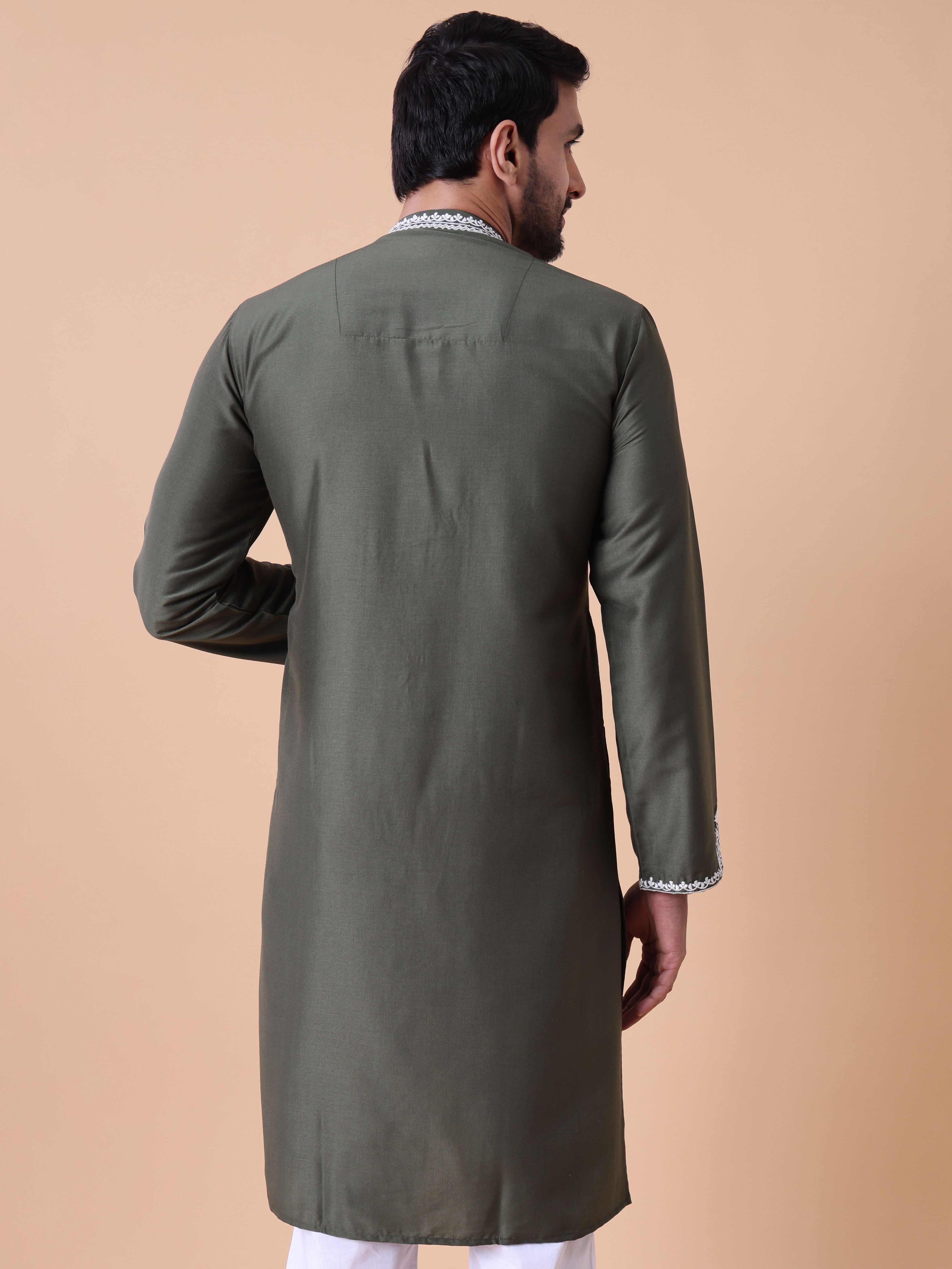 Intricately detailed with delicate embroidery, this kurta adds a touch of festive charm to your wardrobe. The full sleeves, straight hem, and mandarin collar enhance its classic appeal, making it ideal for weddings, celebrations, and festive gatherings.