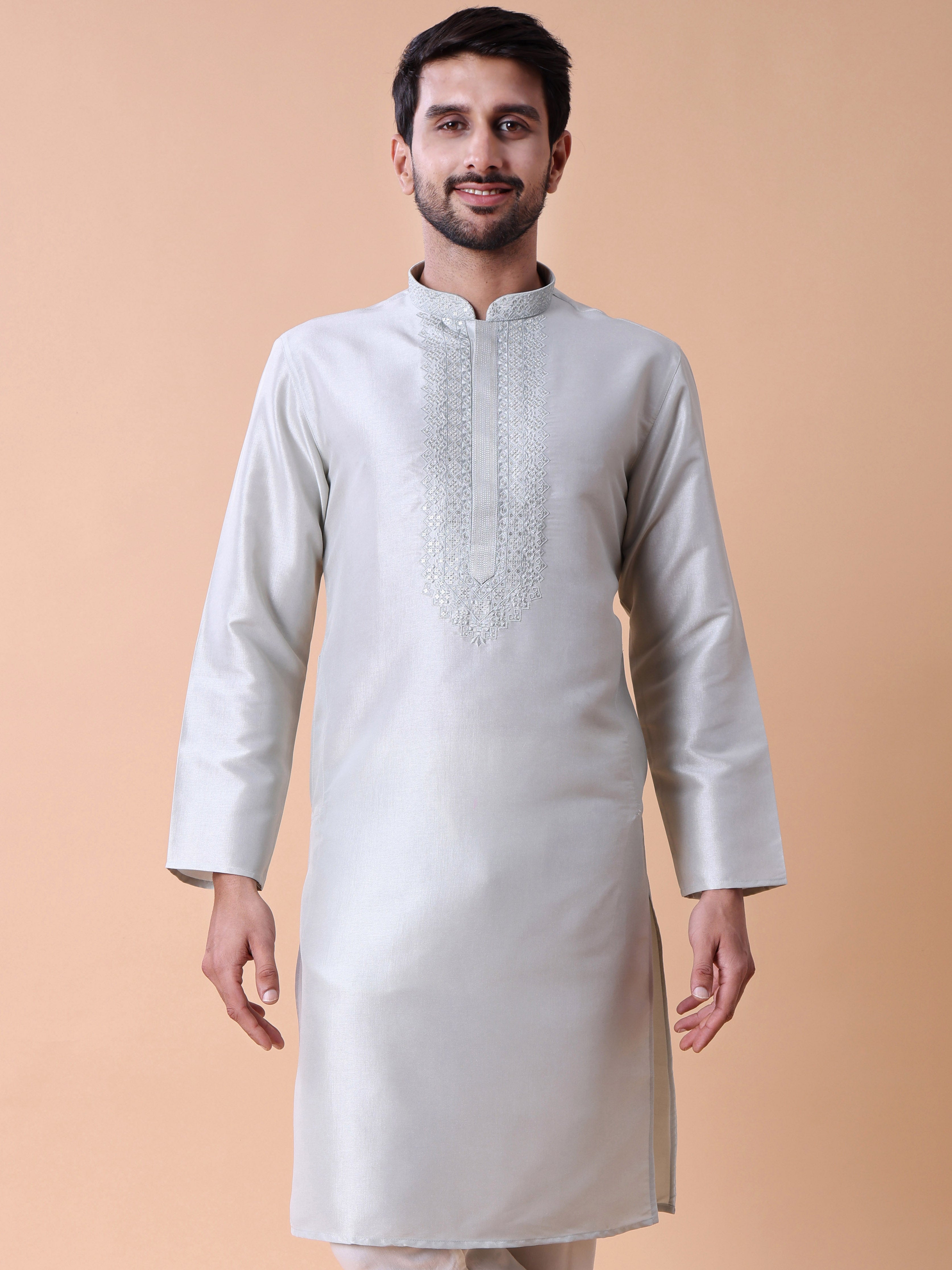Step into festive elegance with this Men’s Embroidered Cotton Silk Kurta, crafted to bring a touch of sophistication to every occasion. Made from a luxurious cotton-silk blend, this kurta offers a perfect balance of comfort and sheen, ensuring you look sharp while staying at ease all day long.
