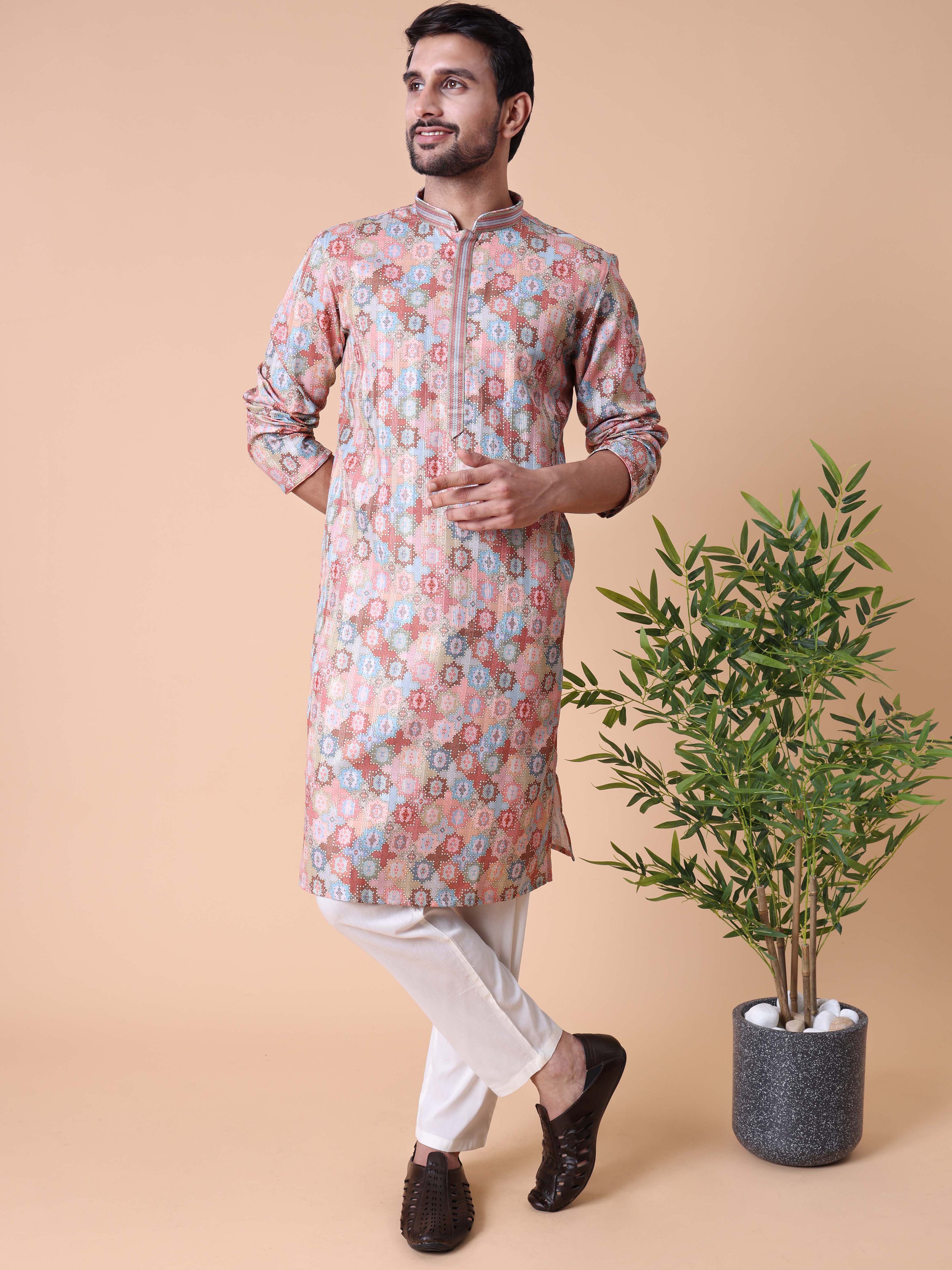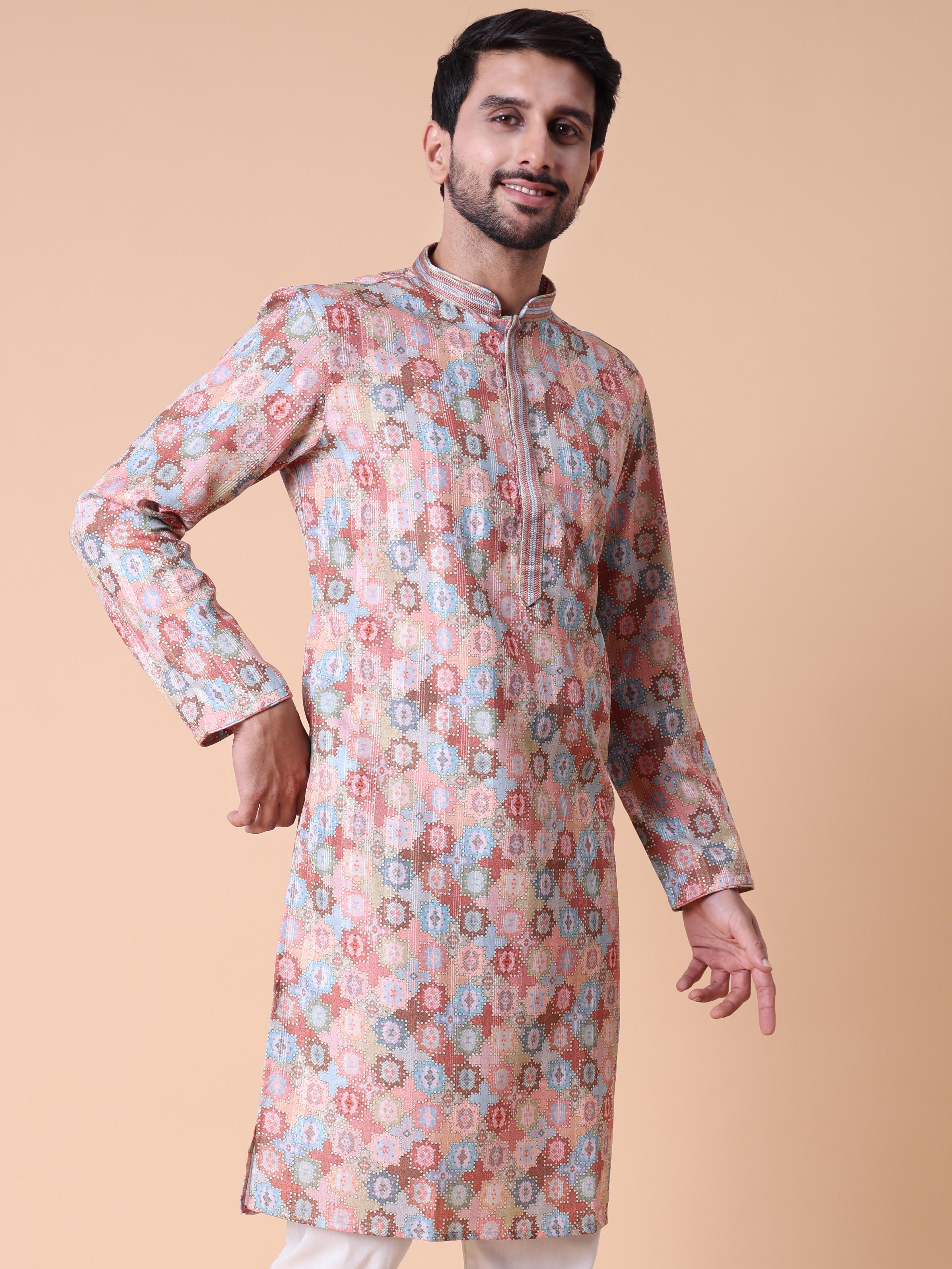The mandarin collar, straight hemline, and full sleeves lend a contemporary yet traditional appeal. Whether you're attending a casual get-together, office ethnic day, or a festive dinner, this kurta is designed to keep you looking sharp and feeling at ease.