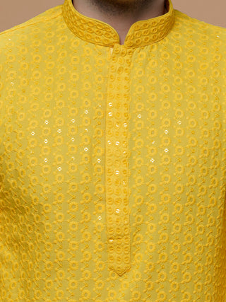 Maahi Fabs Men Chikankari Cotton Yellow Kurta