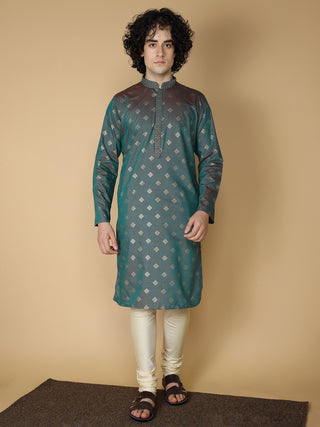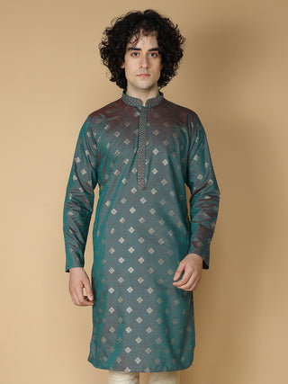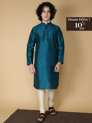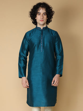 MAAHI FABS Men's Teal Embroidered Kurta Pyjama Set