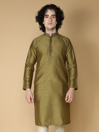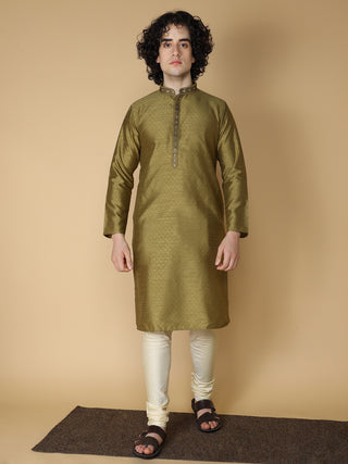 MAAHI FABS Men's Mahendi Solid Regular Fit Kurta Pajama Set