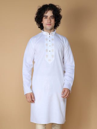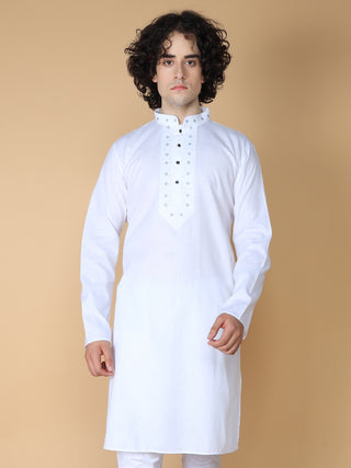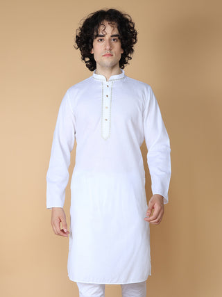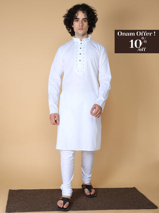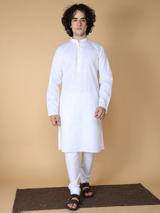 MAAHI FABS Men's White Solid Regular Fit Kurta Pajama Set