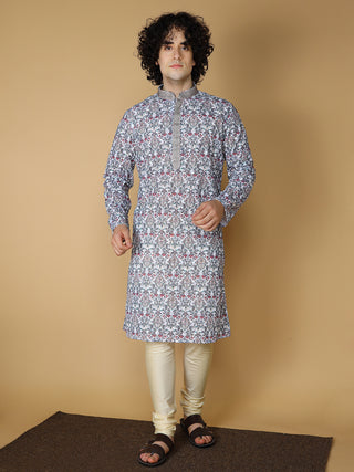 MAAHI FABS Men's Multi color Printed Solid Regular Fit Kurta Pajama Set