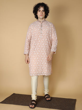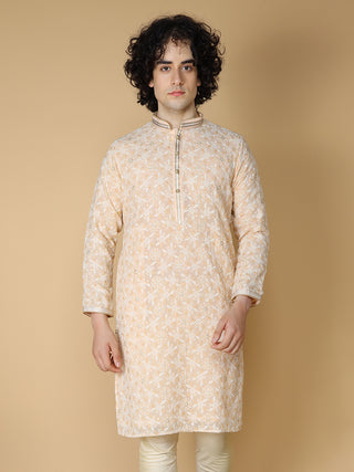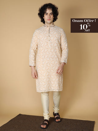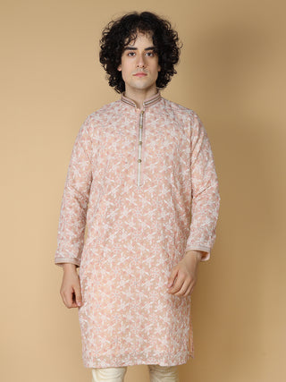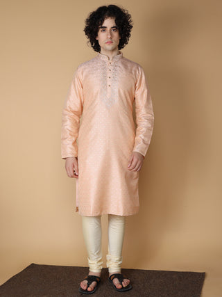 MAAHI FABS Men's Peach Embroidery Regular Fit Kurta Pajama Set