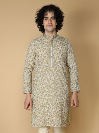 MAAHI FABS Men's Khaki Embroidery Regular Fit Kurta Pajama Set
