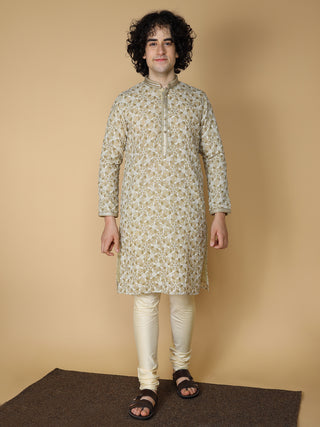 MAAHI FABS Men's Fawn Embroidery Regular Fit Kurta Pajama Set
