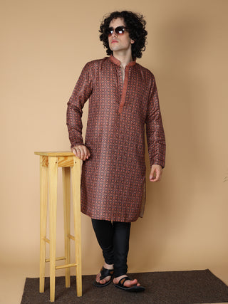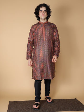 MAAHI FABS Men's Peach Jacquard Kurta Pajama Set