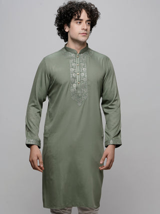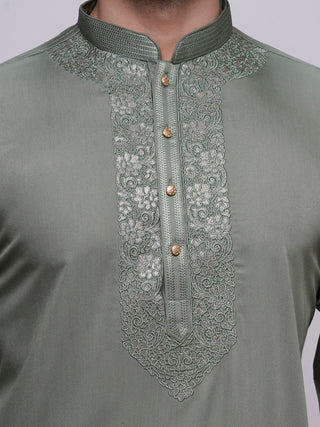 Maahi Fabs Men's Sequin Embroidered Green Kurta Set