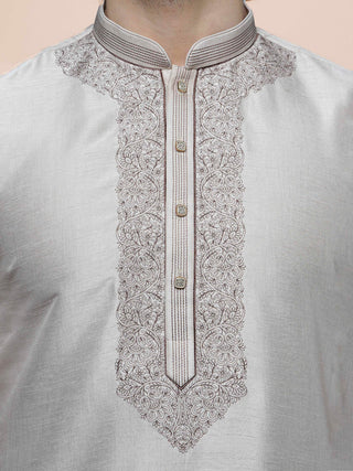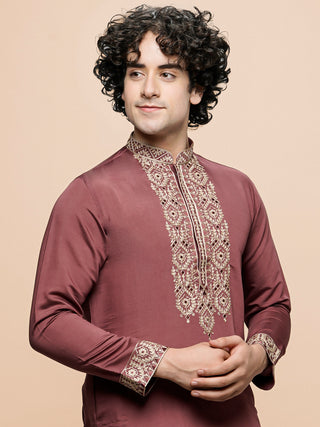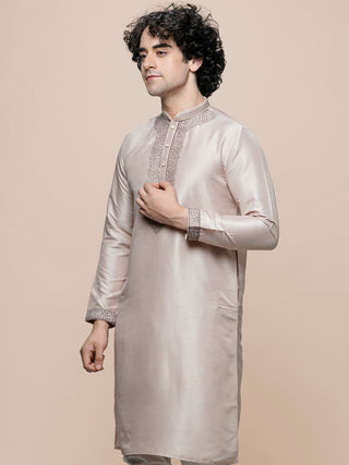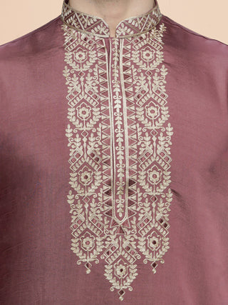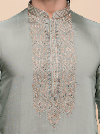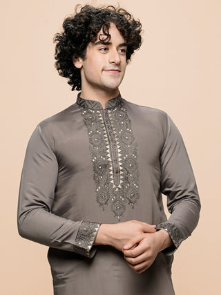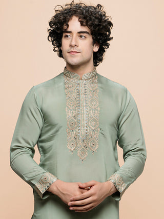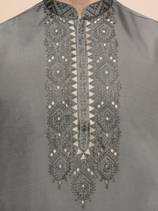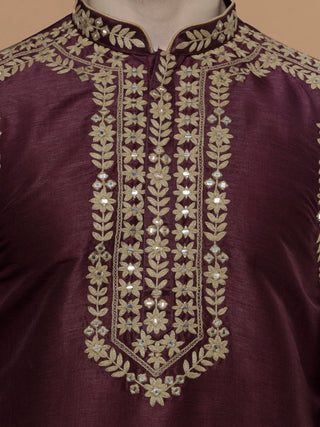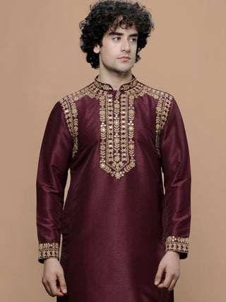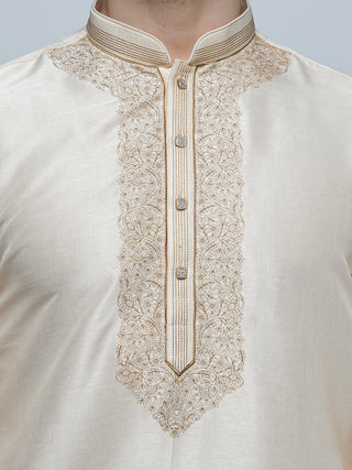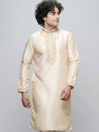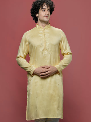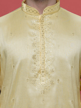 Maahi Fabs Men's Sequin Embroidered Yellow Kurta Set