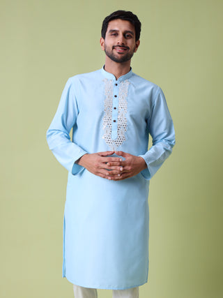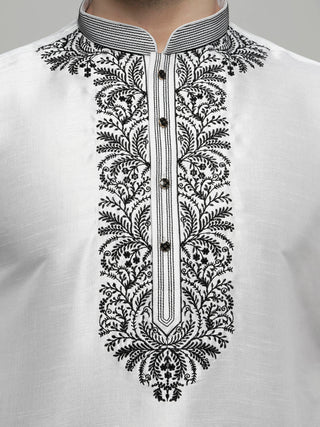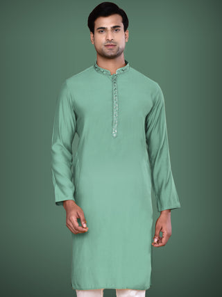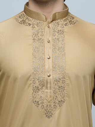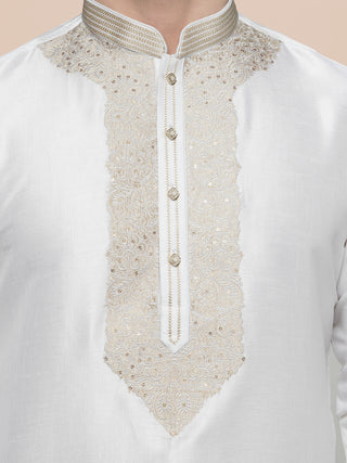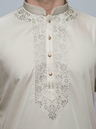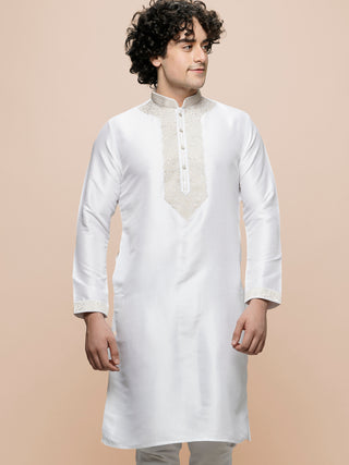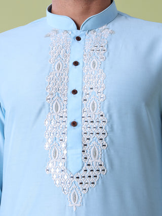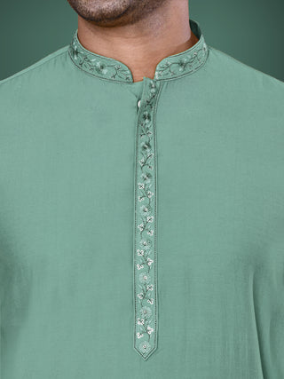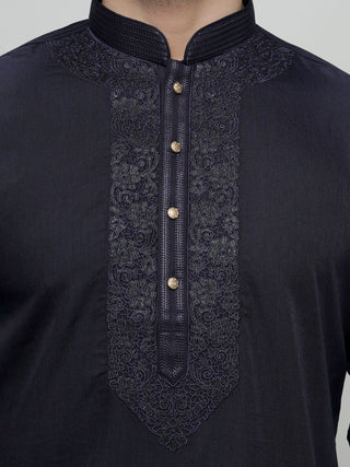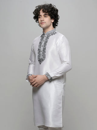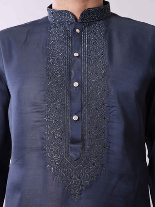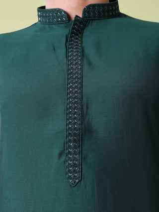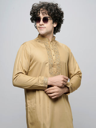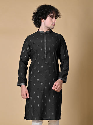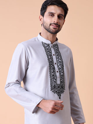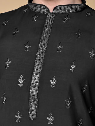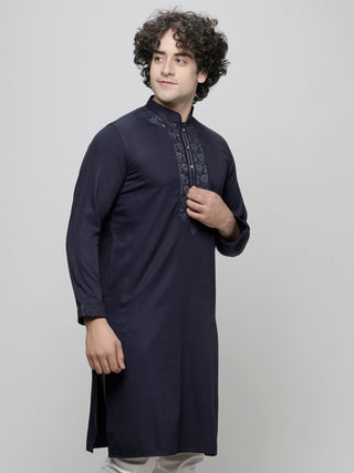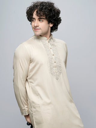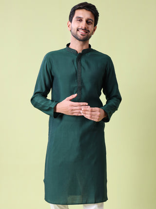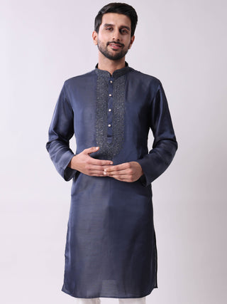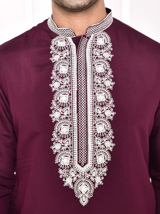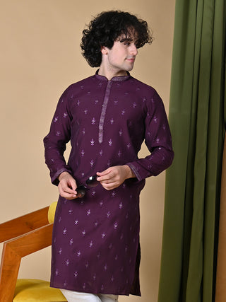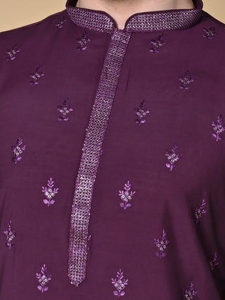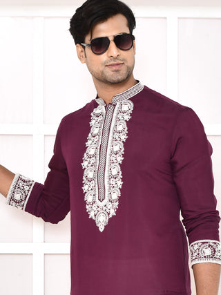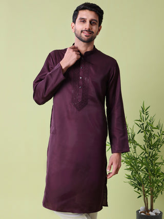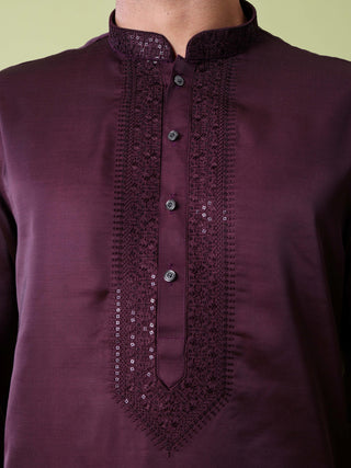 Men's Sequin Embroidered Wine Cotton Silk Kurta