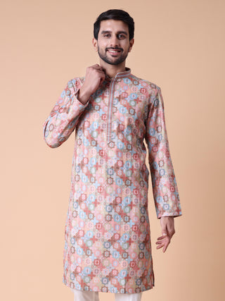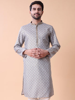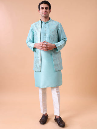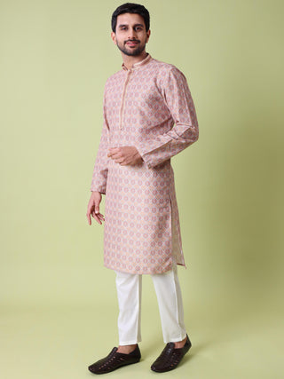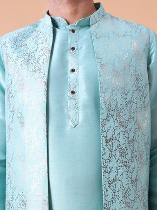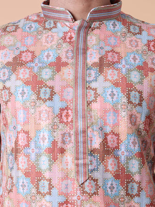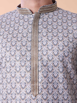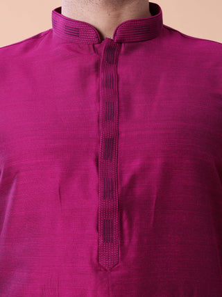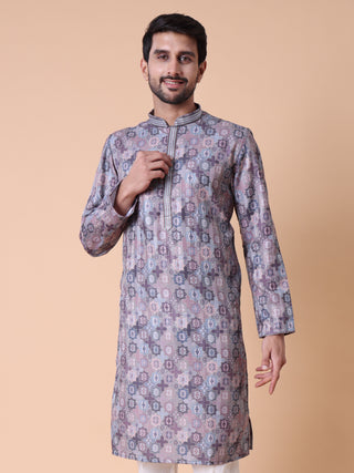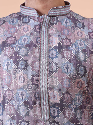 Men's Purple Kurta Pyjama & Printed Nehru Jacket