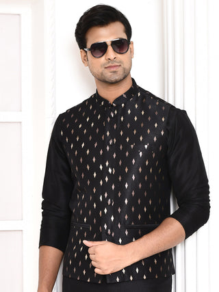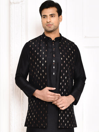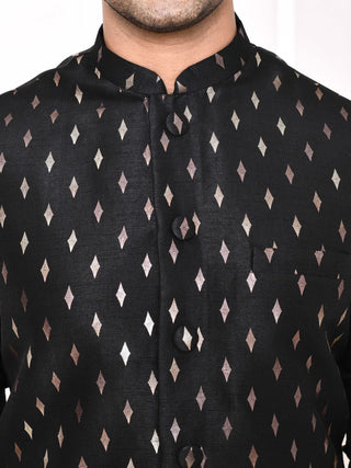 Men's Printed Black Kurta & Jacket Set