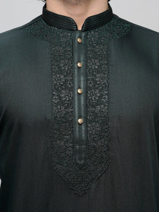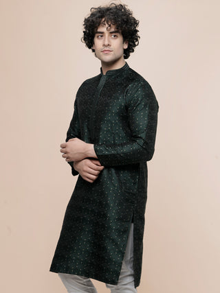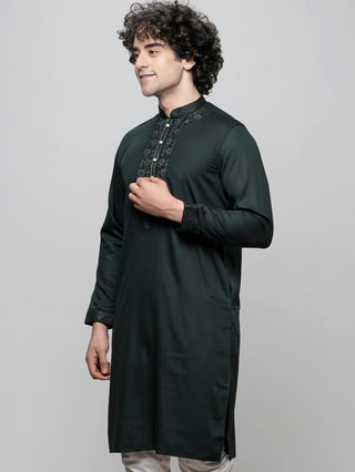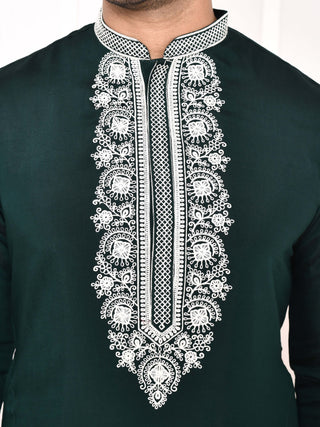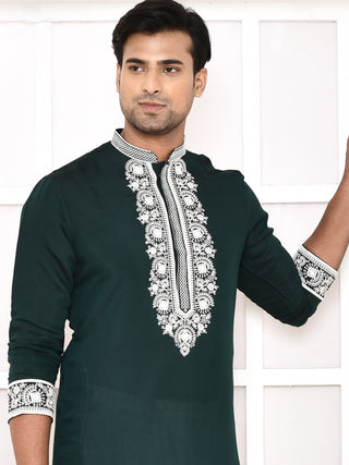 Men's Bottlegreen Cotton Embroidered Kurta