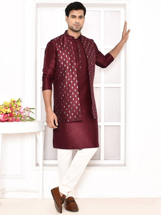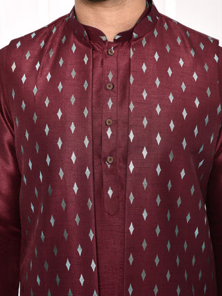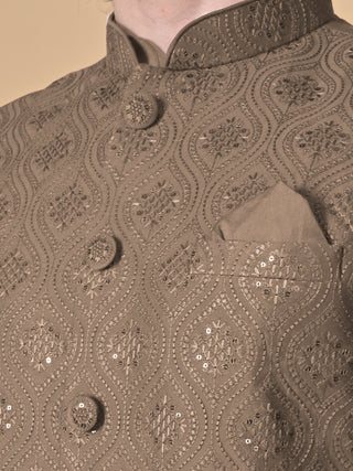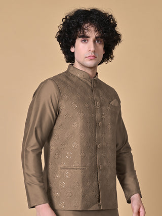Men's Brown Embroidered Kurta & Jacket Set