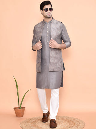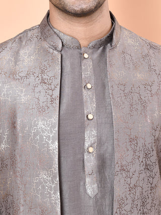 Men's Printed Long Jacket Set (Grey)