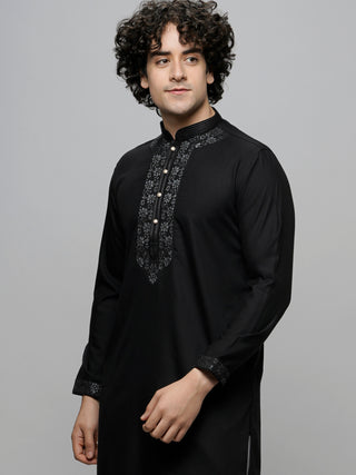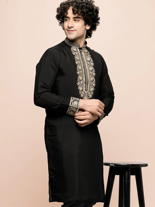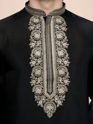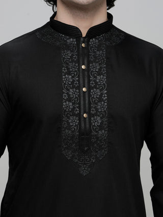Men's Black Embroidered Kurta