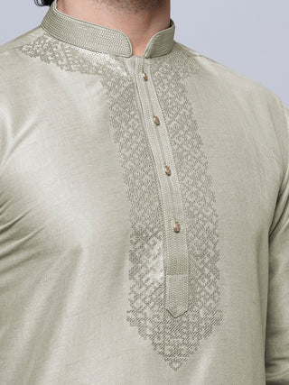 Men's Green Embroidered Kurta
