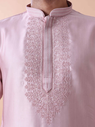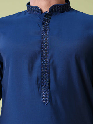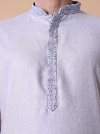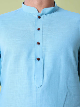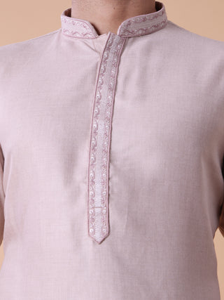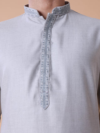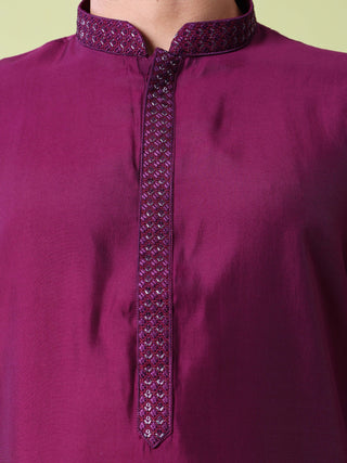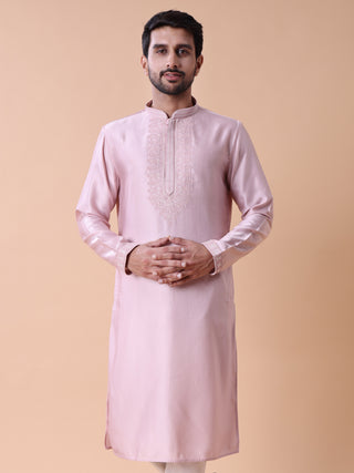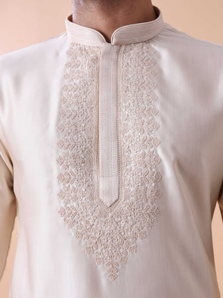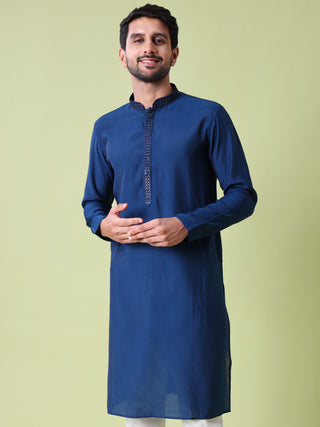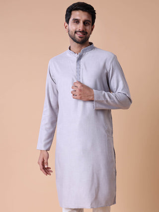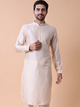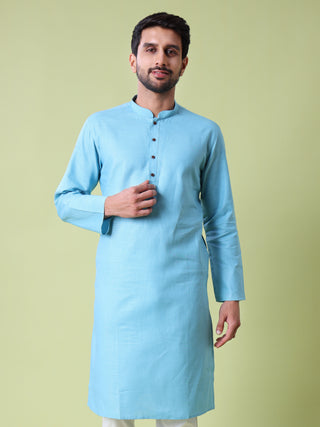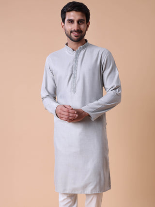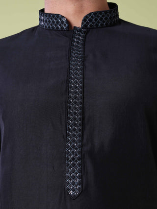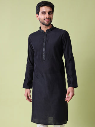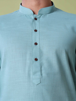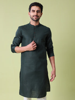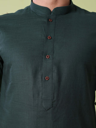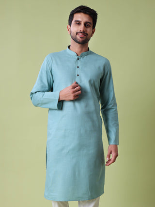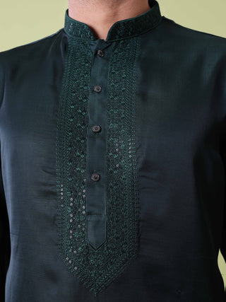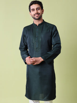 Men's Sequin Embroidered Green Cotton Silk Kurta