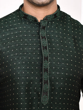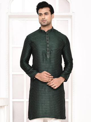 Men's Silk Polka Dotted Green Kurta
