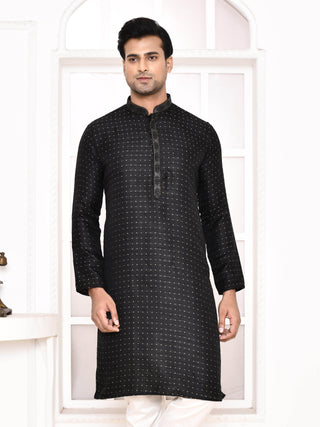 Men's Silk Polka Dotted Black Kurta