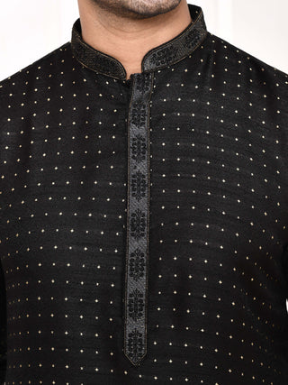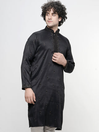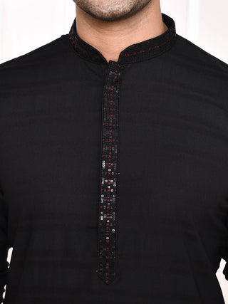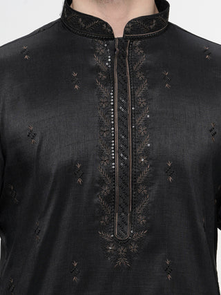 Maahi Fabs Men's Sequin Embroidered Black Kurta Set