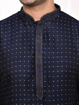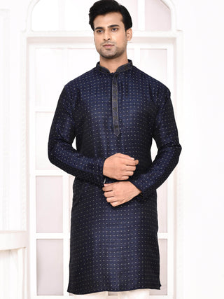 Men's Silk Polka Dotted Navy Blue Kurta
