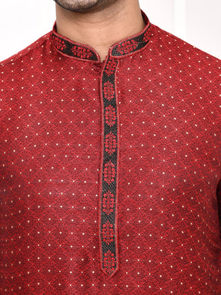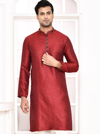 Men's Silk Polka Dotted Maroon Kurta