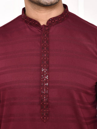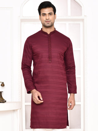 Men's Maroon Sifli Worked Cotton Kurta