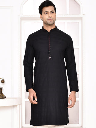 Men's Black Sifli Worked Cotton Kurta